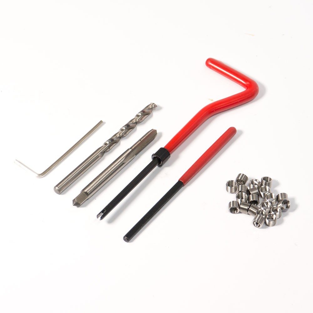 - Sada obsahuje všetky diely potrebné k oprave závitov s rozmerom M5x0.8