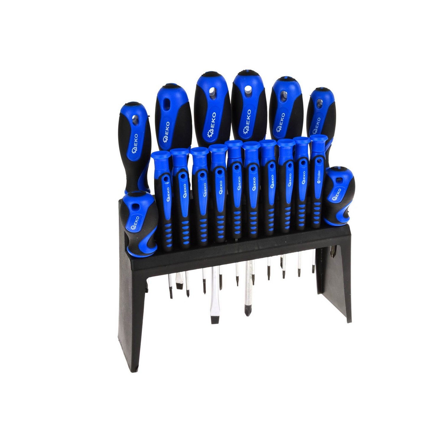 Sada presných a štandardných skrutkovačov na stojane, 18 kusov. Phillips, SL, Trox.