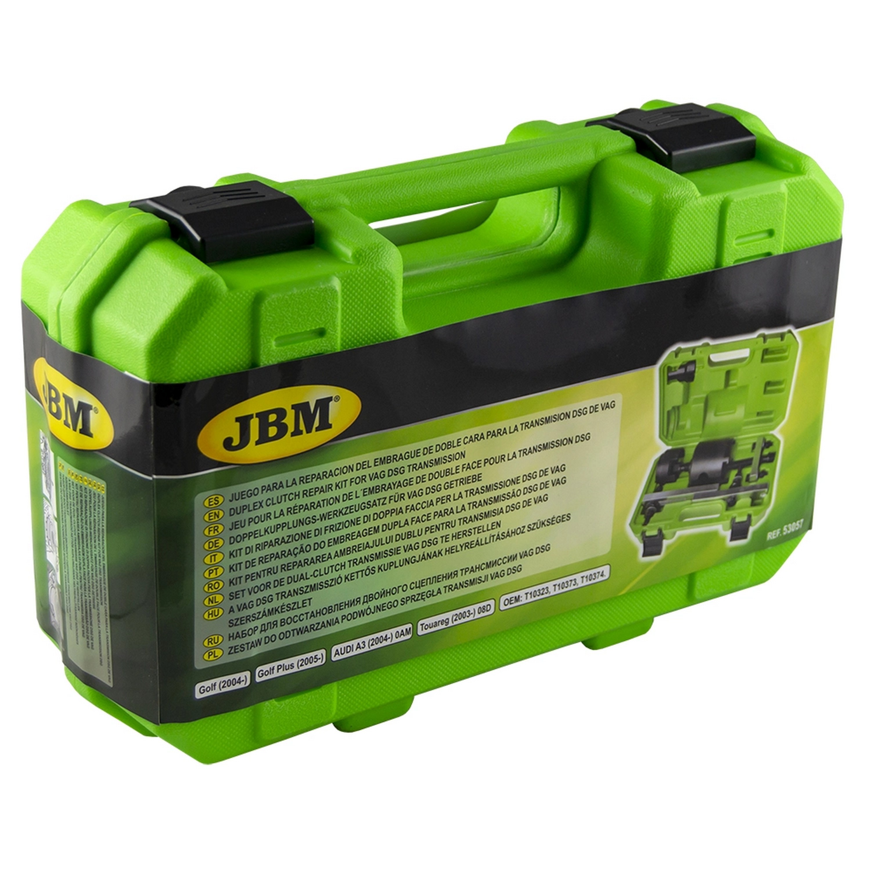 Špeciálne náradie na opravy prevodoviek DSG na montáž a demontáž skrine spojky. Na servis 7-stupňových prevodoviek (kód 0AM) v modeloch Golf (2004-), Golf Plus (2005-), Audi A3 (2004-) a Touareg (2003-) so 6-stupňovou prevodovkou (kód 08D). Vyrobené z vysoko kvalitných materiálov. Dodáva sa v úložnom puzdre.