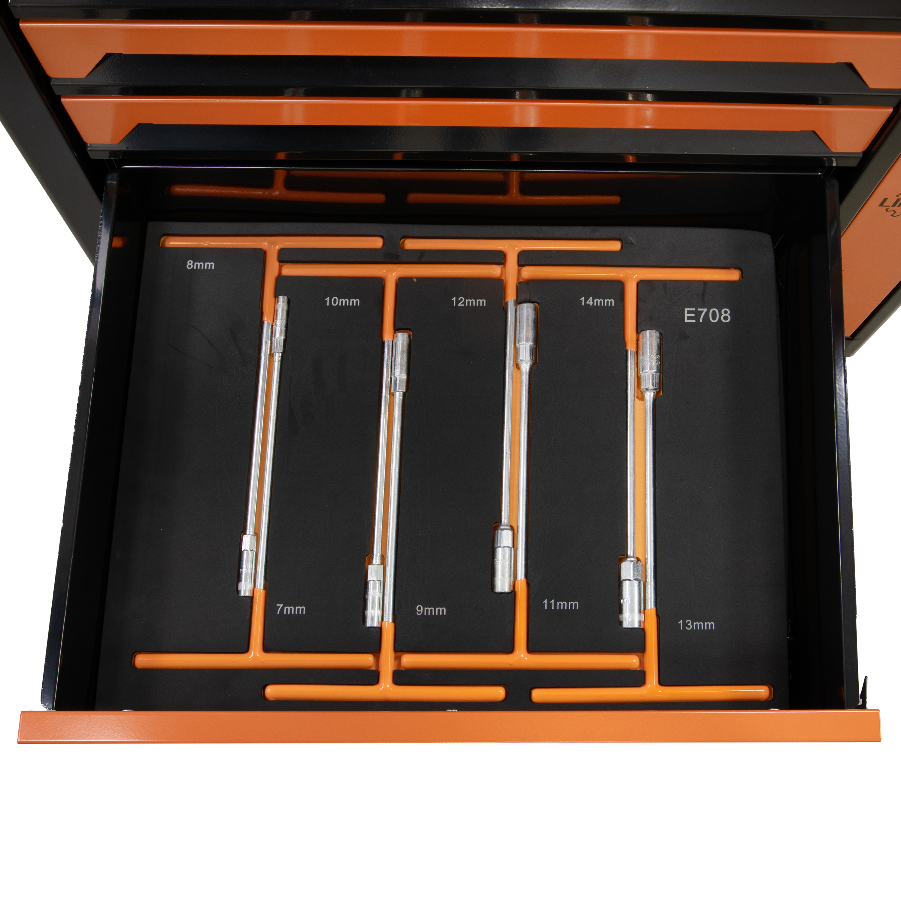 So svojou veľkorysou kapacitou a 7 priestrannými zásuvkami ponúka táto skrinka na náradie dostatok úložného priestoru pre širokú škálu náradia a vybavenia. Či už potrebujete uložiť kľúče, skrutkovače, nástrčky alebo iné náradie. Robustná konštrukcia zaisťuje odolnosť a dlhú životnosť, vďaka čomu je spoľahlivou voľbou pre osobné aj profesionálne použitie. Každá zásuvka je premyslene navrhnutá s hladkými posuvnými lištami, ktoré umožňujú ľahký prístup k vašim nástrojom.