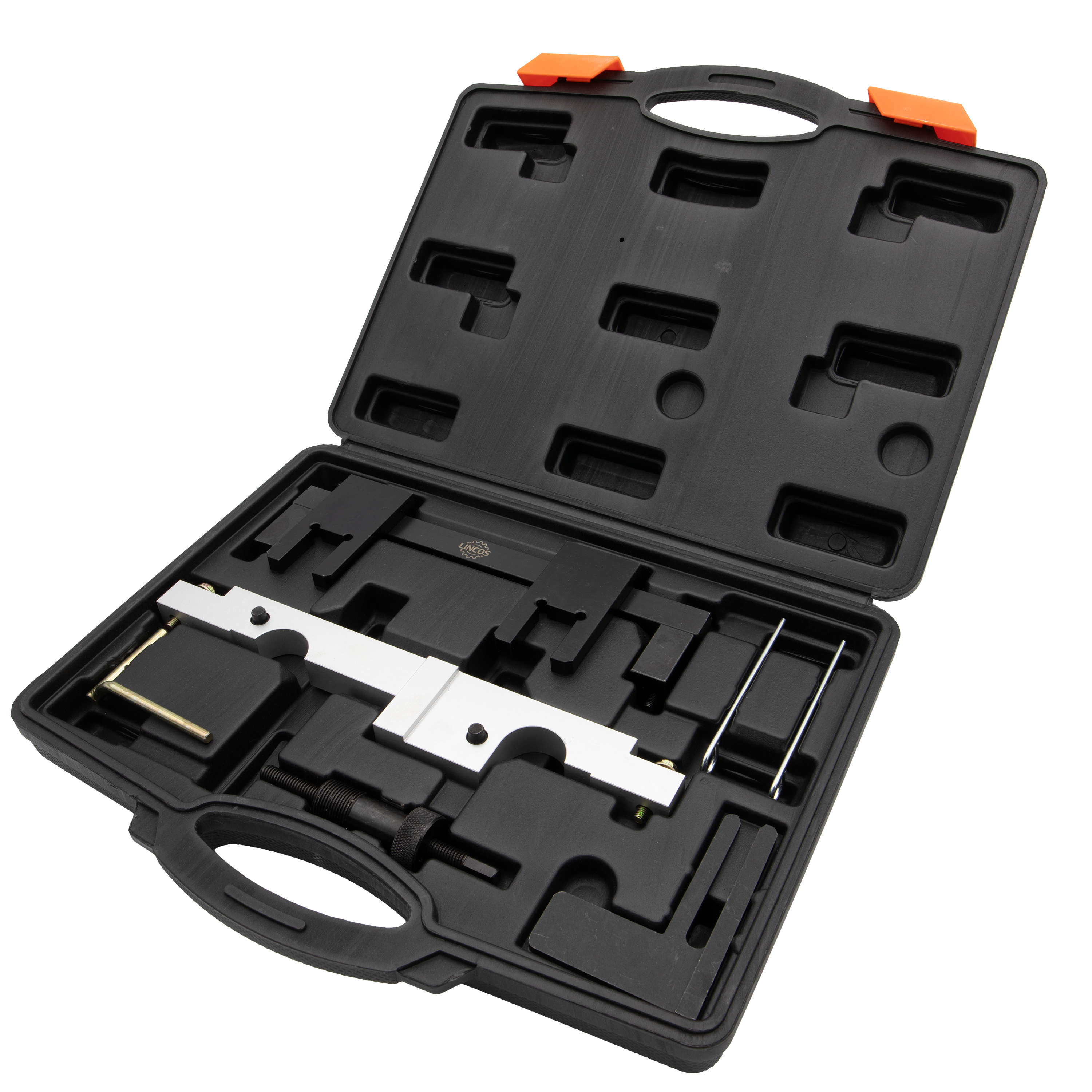 13-dielna nástrojová súprava pre benzínové motory BMW a Mini (1,2 l, 1,5 l a 2,0 l). Určená na presné nastavenie rozvodového reťazca a časovania ventilov u modelov vyrábaných od roku 2014.