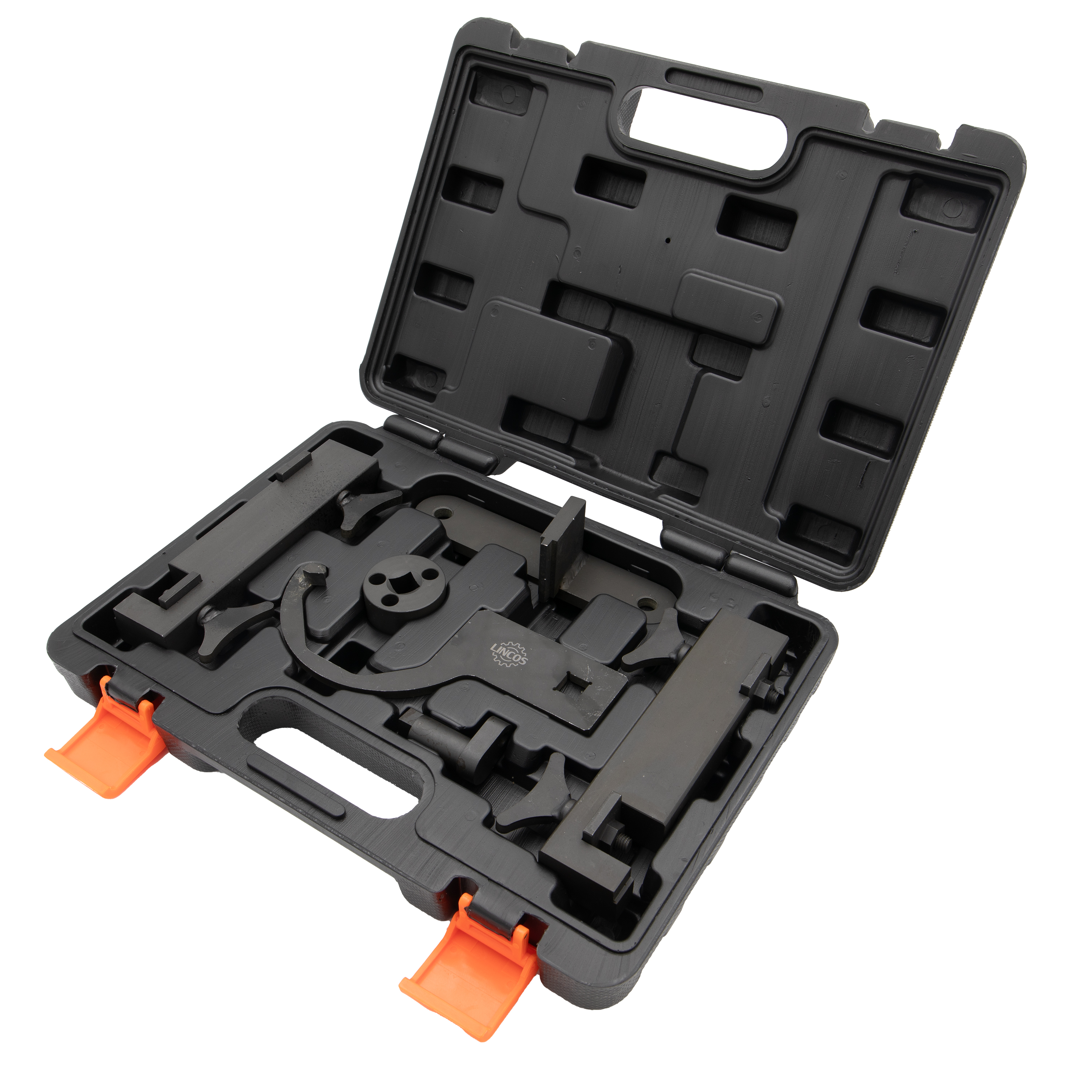 Nástroje na napínanie variabilného časovania ventilov (VVT) : Súprava obsahuje špecializované nástroje na napínanie systému VVT počas procesu rozvodu. To je kľúčové pre udržanie výkonu a účinnosti motora.