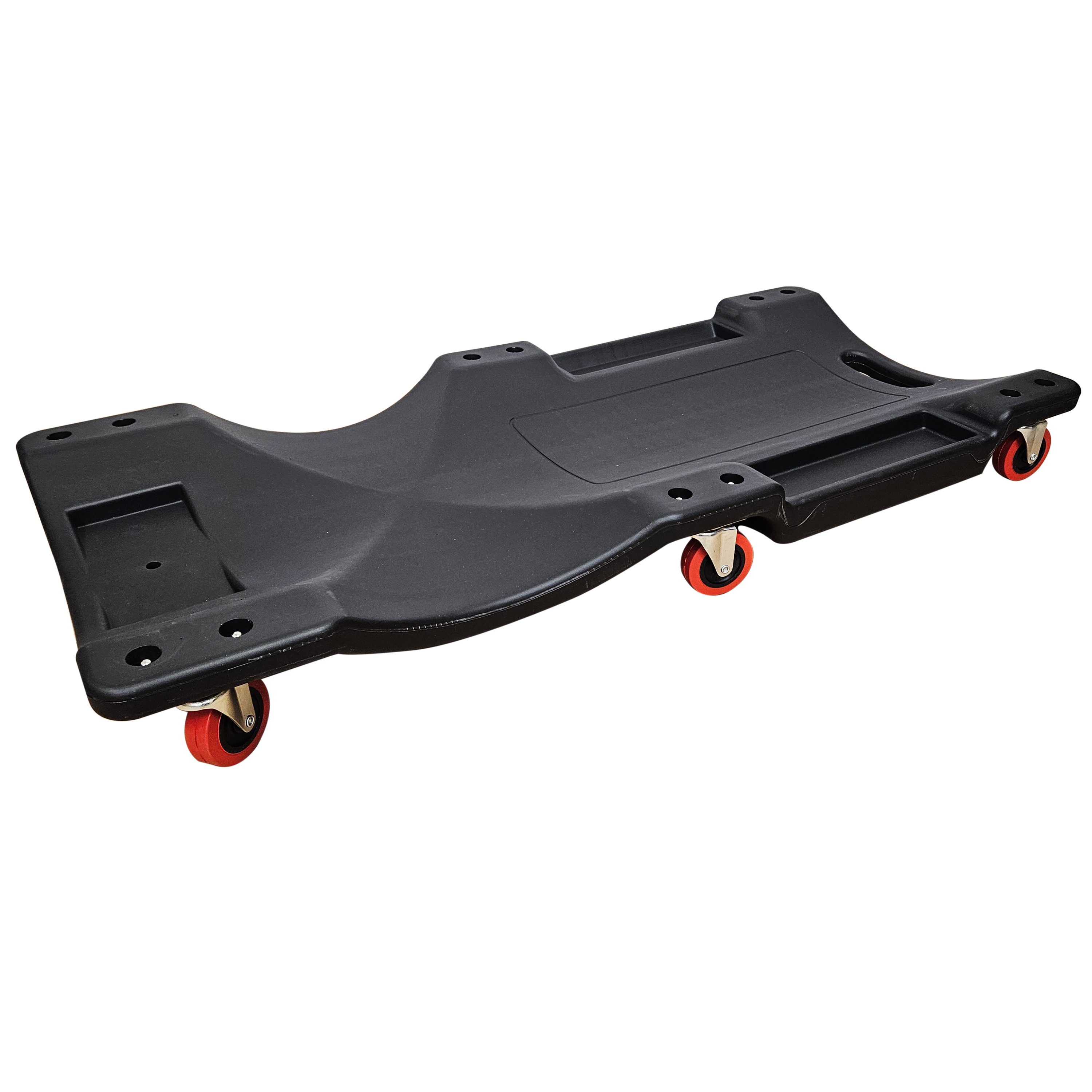 Plastové montážne ležadlo s úložným priestorom na náradie, bez opierky hlavy, voľne ovládateľné kolieska, rozmer 915x435x100mm, nosnosť 80kg