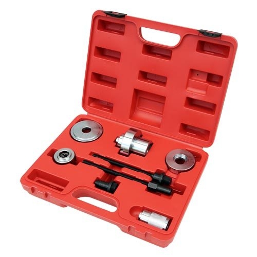 Profesionálna sada nástrojov na správnu inštaláciu zadného tesnenia kľukového hriadeľa u motorov VAG (VW/Audi 1.8T, 2.0T, 3.0 V6, 3.2, 4.2L). Obsahuje precízne obrábané vodidlá a tlakovacie diely, ktoré zabezpečia bezchybnú a presnú montáž tesnenia bez poškodenia.