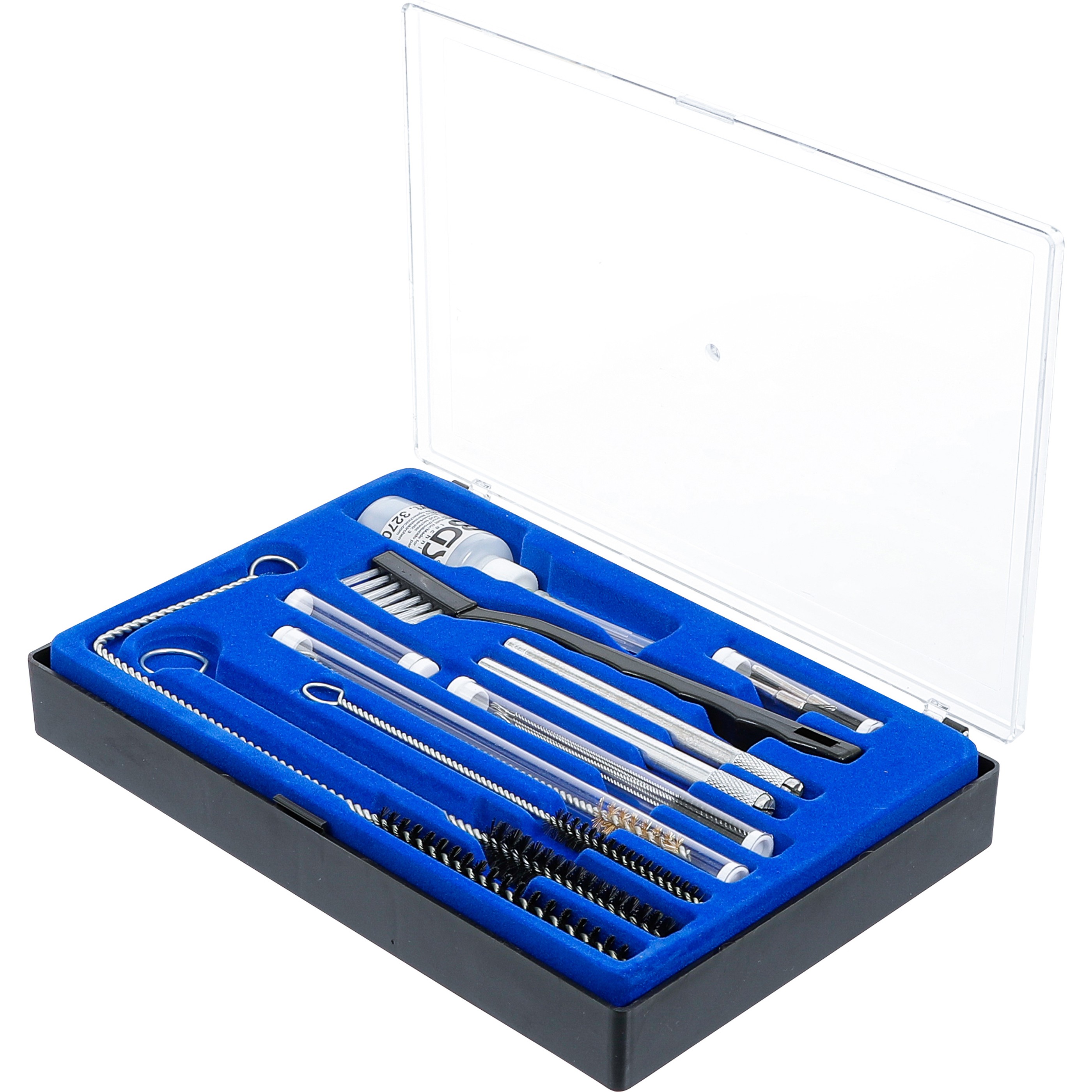 Sada obsahuje rôzne kefky a mikro nástroje vhodné pre rozličné veľkosti trysiek a ťažko dostupné miesta. Medzi komponentami nájdete 3 veľké kefy rôznych dĺžok, 5 mini kefiek, 6 mikro ihiel a 1 mosadznú kefku, ktorá je obzvlášť užitočná pri silnejšom zanesení. Okrem toho súčasťou balenia je aj veľká čistiaca kefka a 3 krátke kefky pre všestranné použitie.